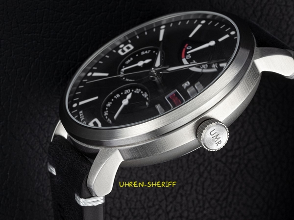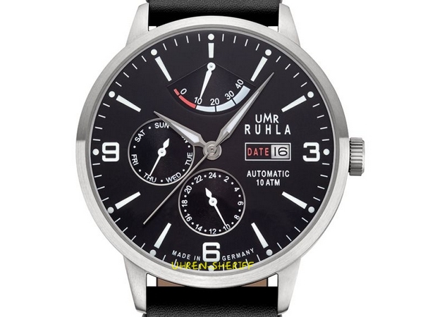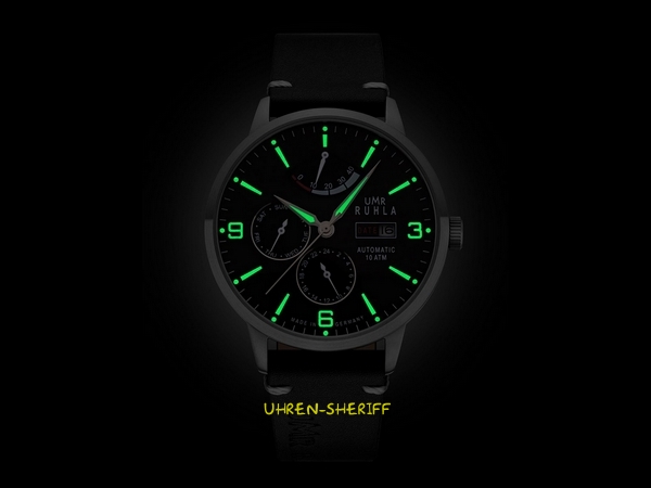 silberfarbene mit Leuchtmasse ausgelegte Stunden- und Minutenzeiger