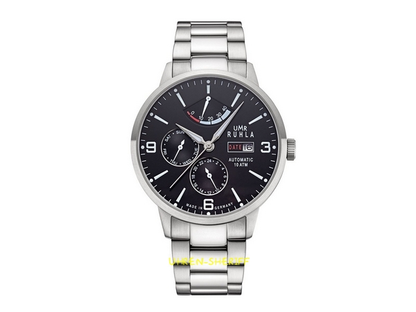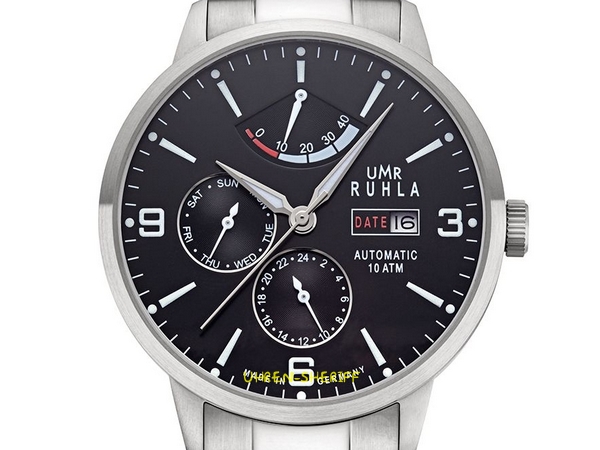 silberfarbene mit Leuchtmasse ausgelegte Stunden- und Minutenzeiger